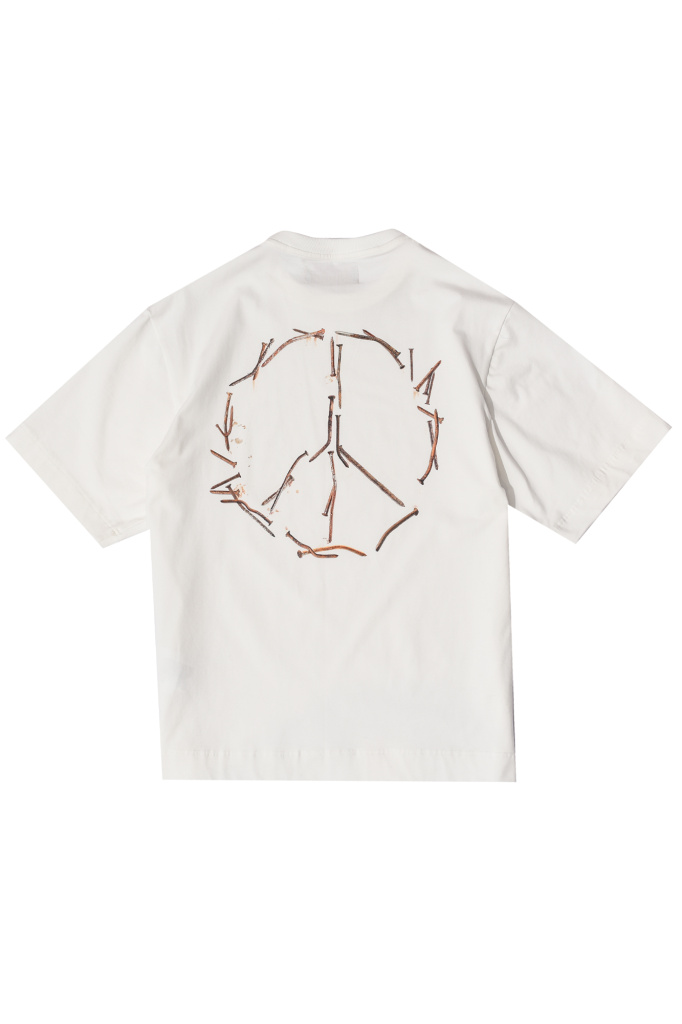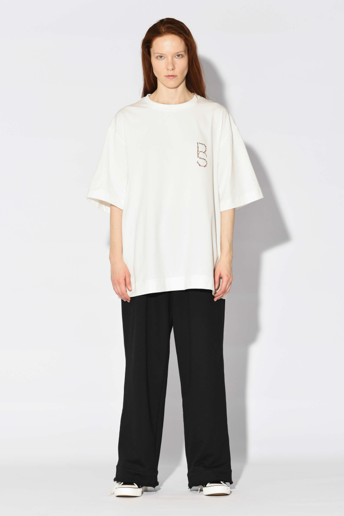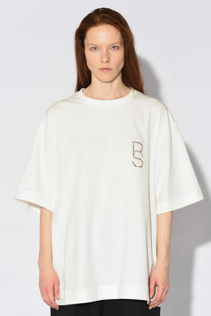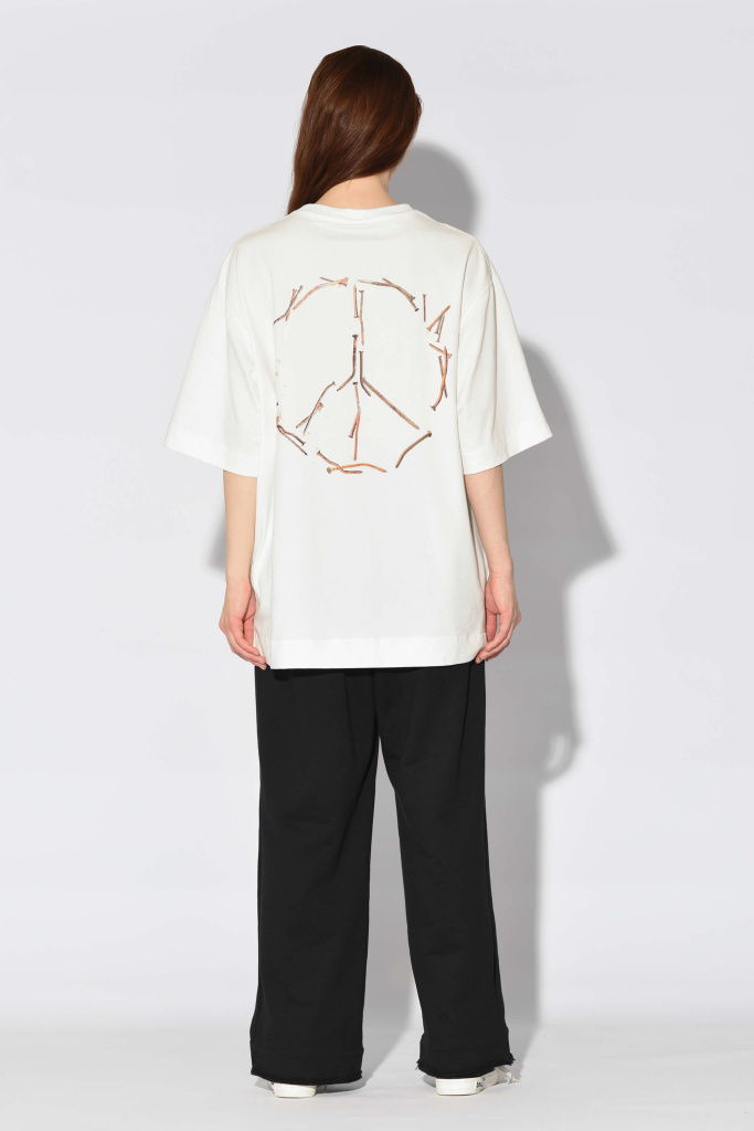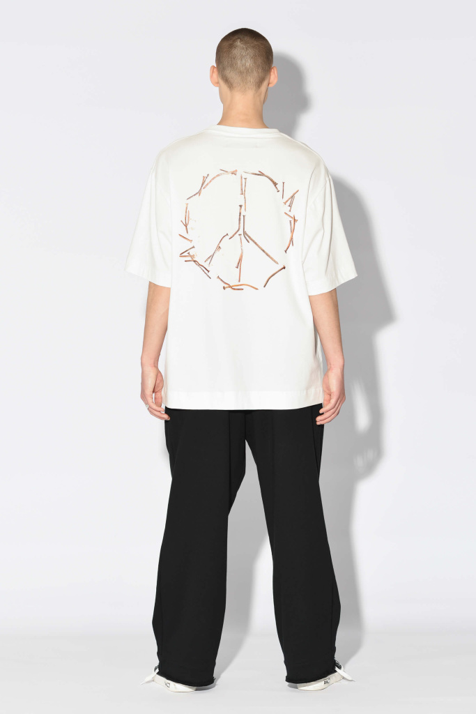 Белая футболка свободного кроя из мягкого хлопка. Дополнена логотипом Red September на груди и крупным принтом на спине. • Свободный крой • Унисекс модель • Круглый вырез горловины