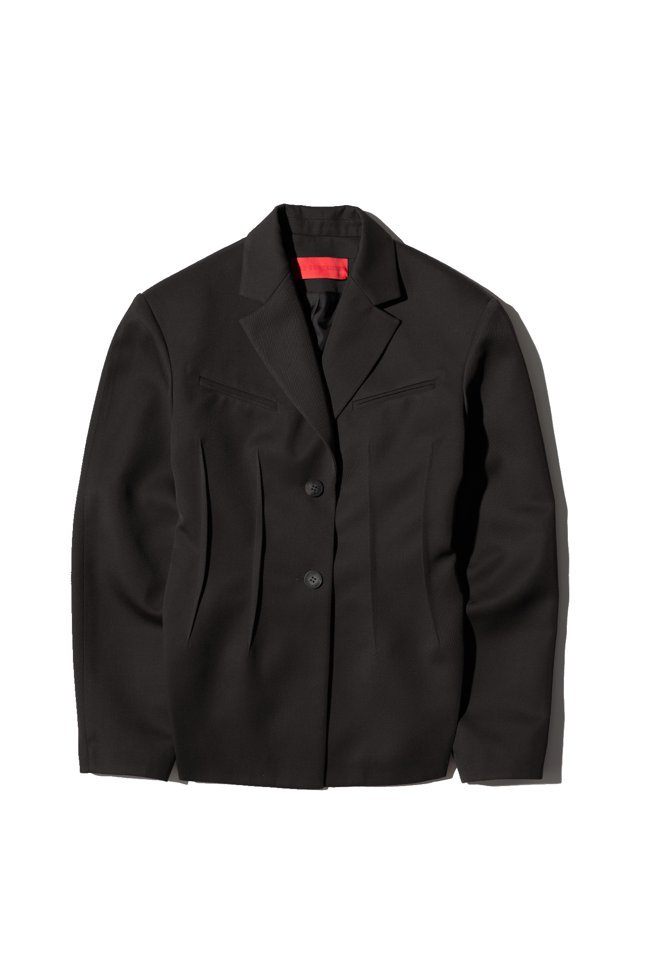 Пиджак из плотной костюмной ткани с декоративными вырезами по бокам
