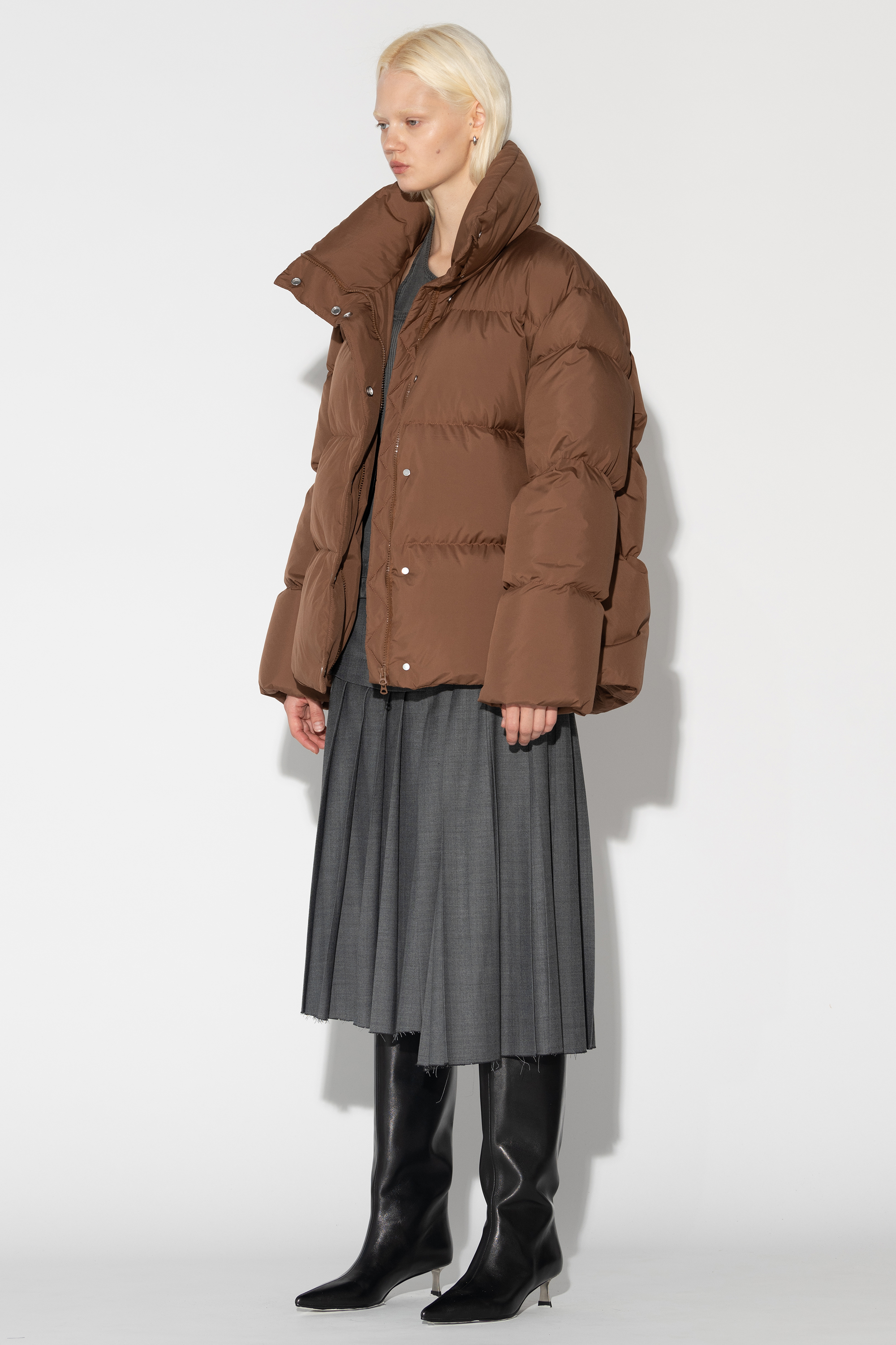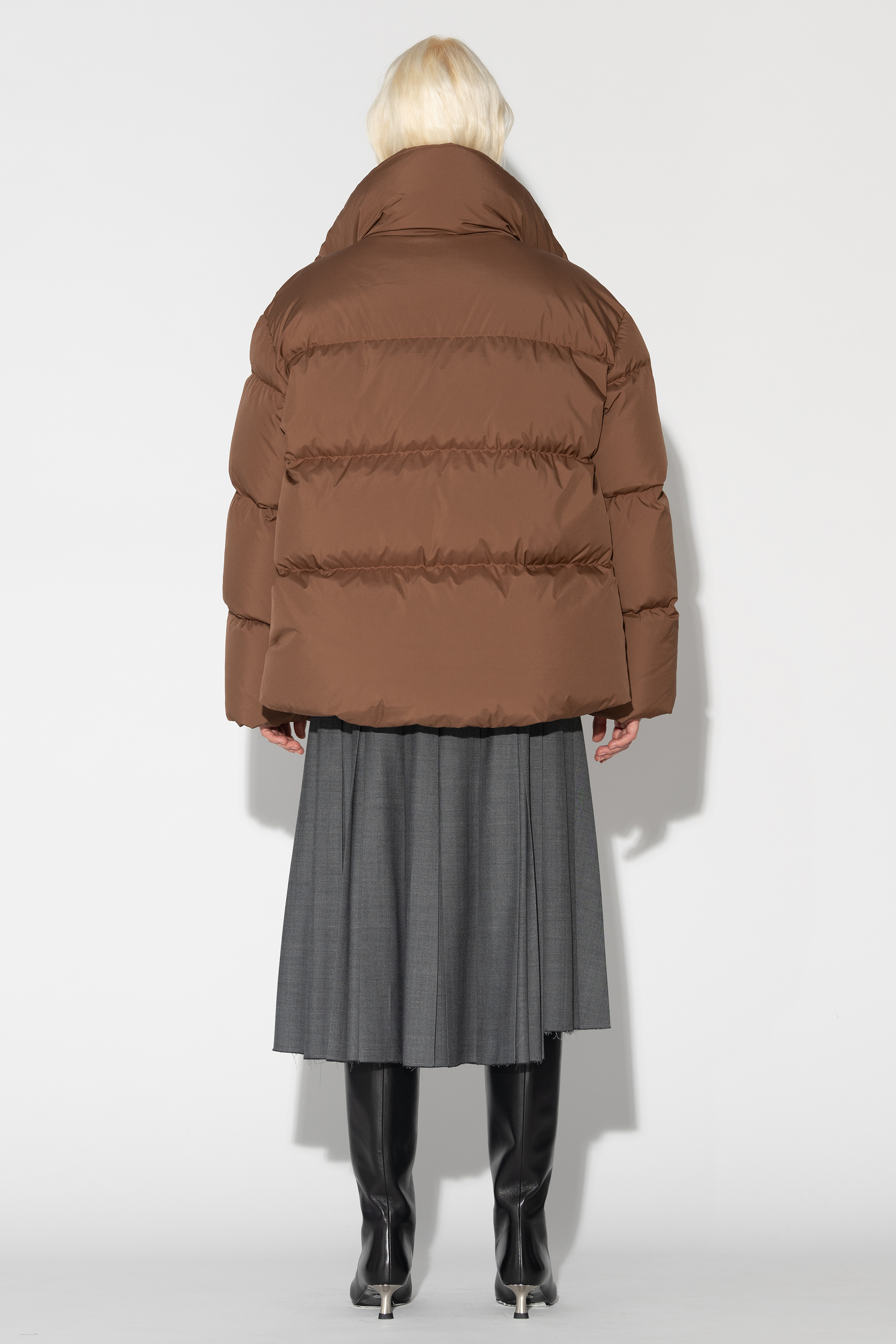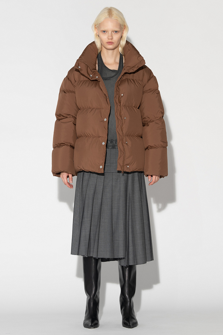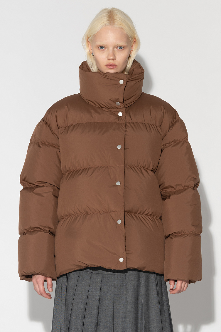 Зимняя куртка Puffer с воротником стойкой Финишная обработка ткани обладает водоотталкивающими свойствами Натуральный наполнитель гусиный пух/перо Объемный силуэт Боковые карманы на молнии Застежка на молнии с ветрозащитной планкой на кнопках Подол регулируется эластичным шнурком с фиксаторами