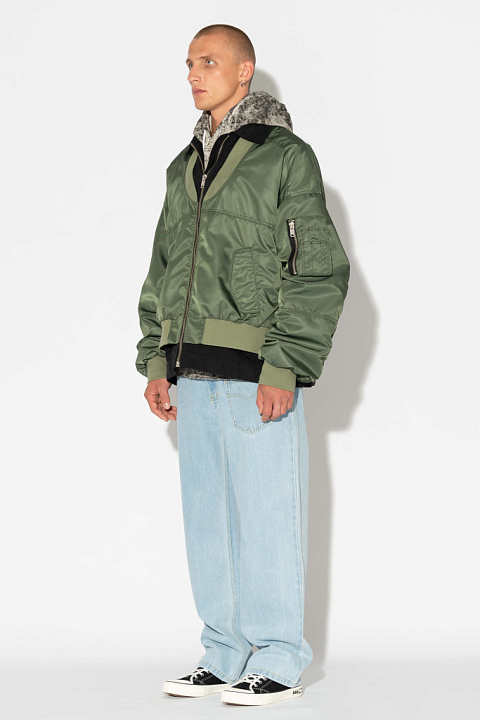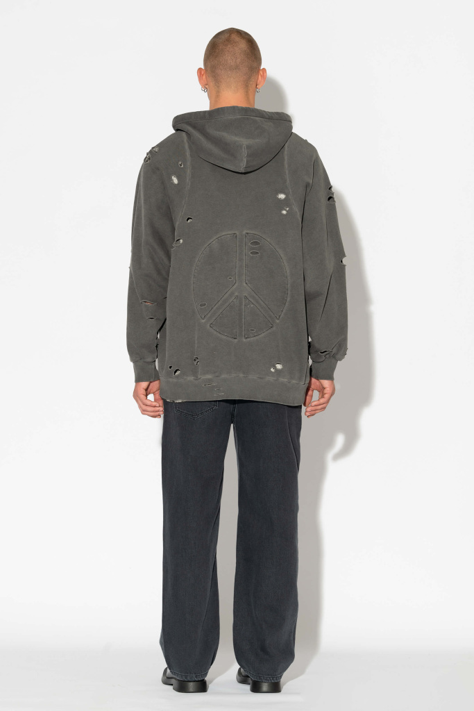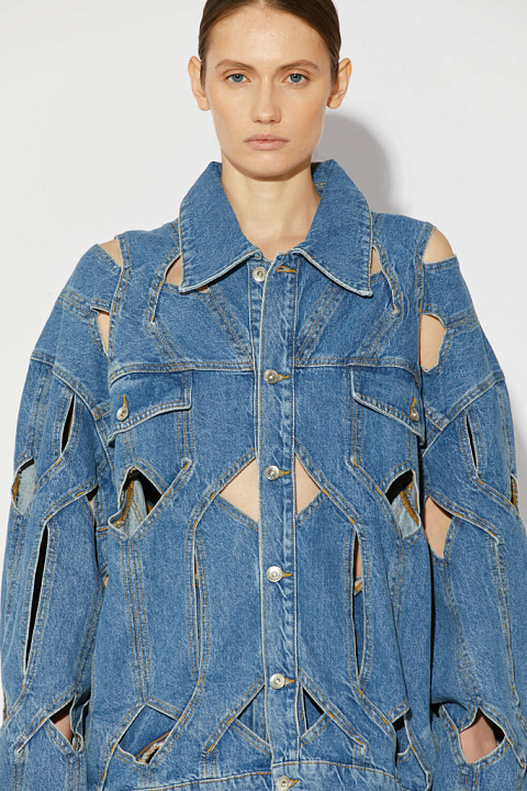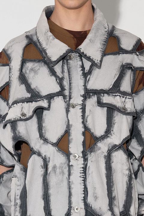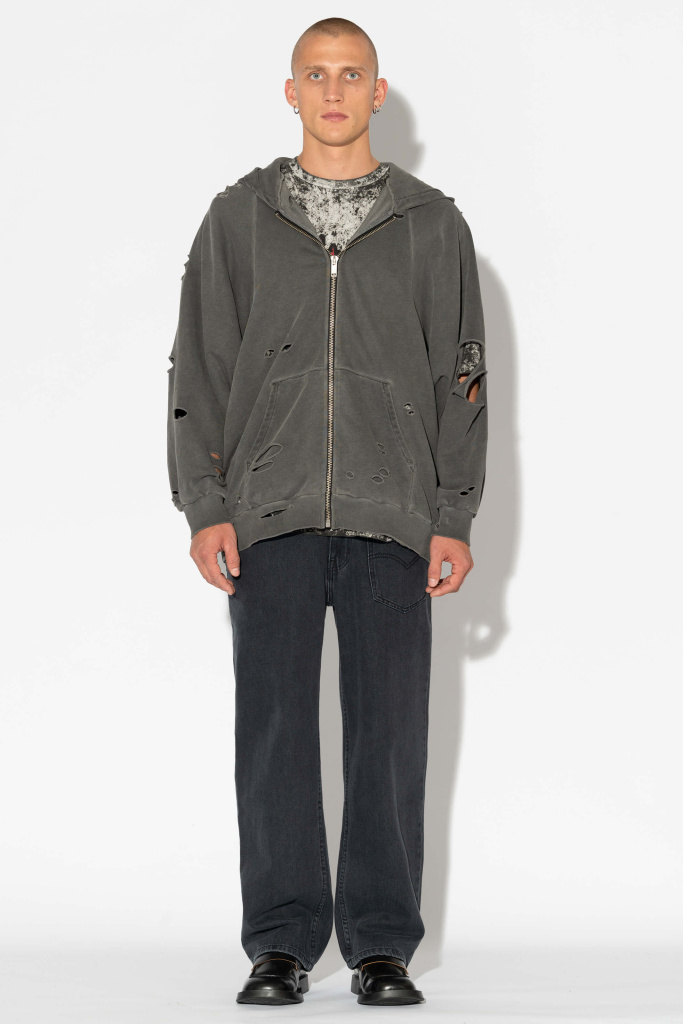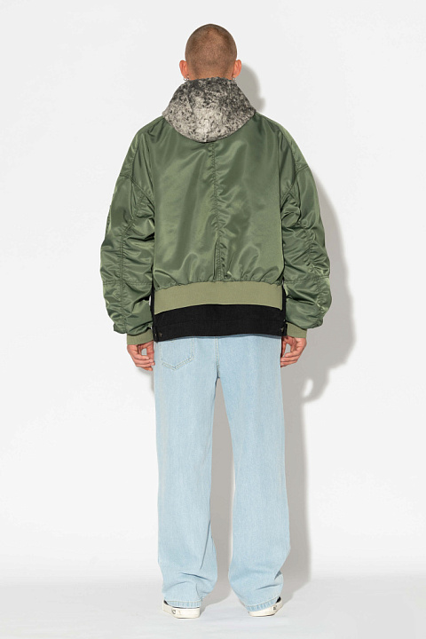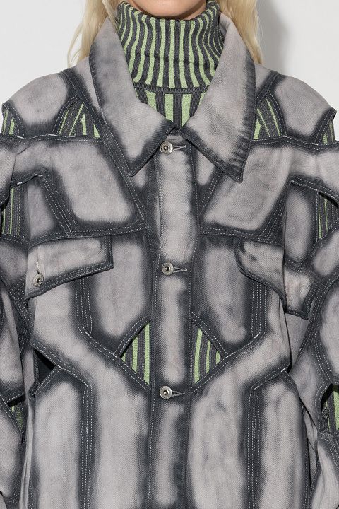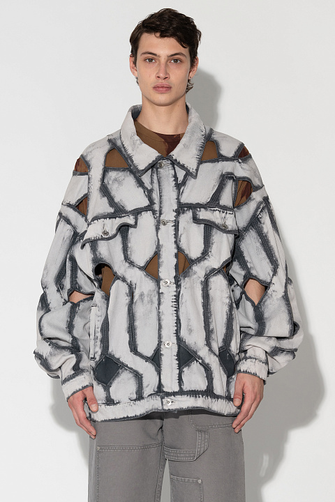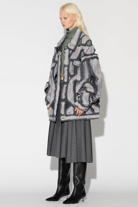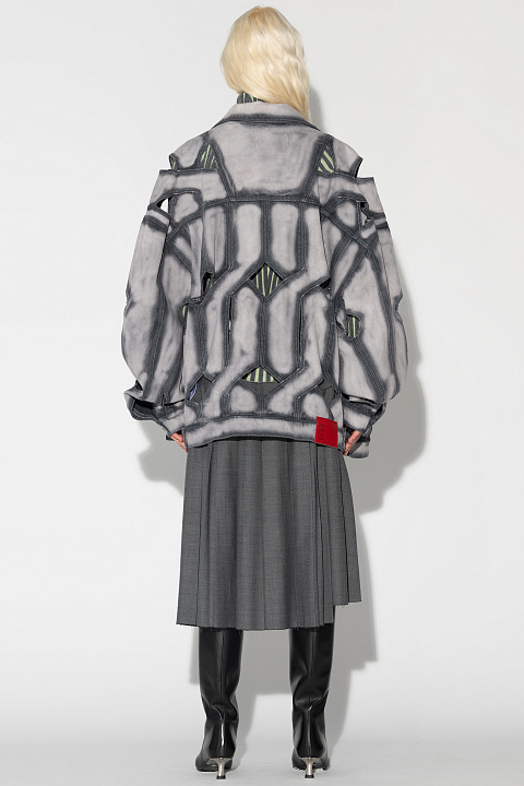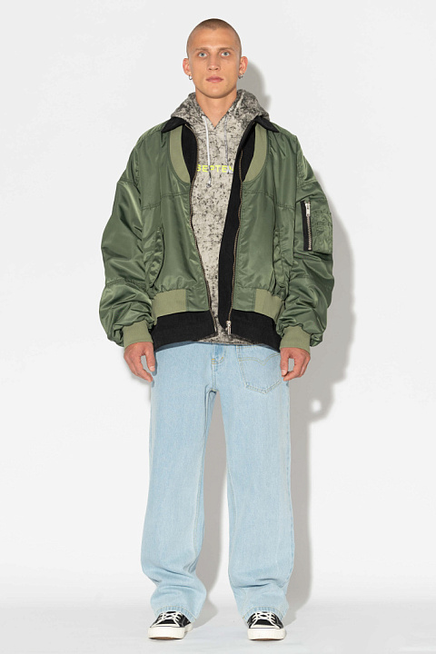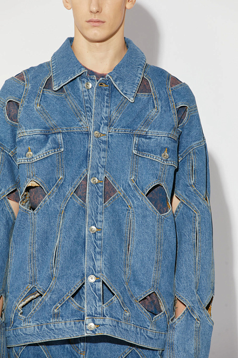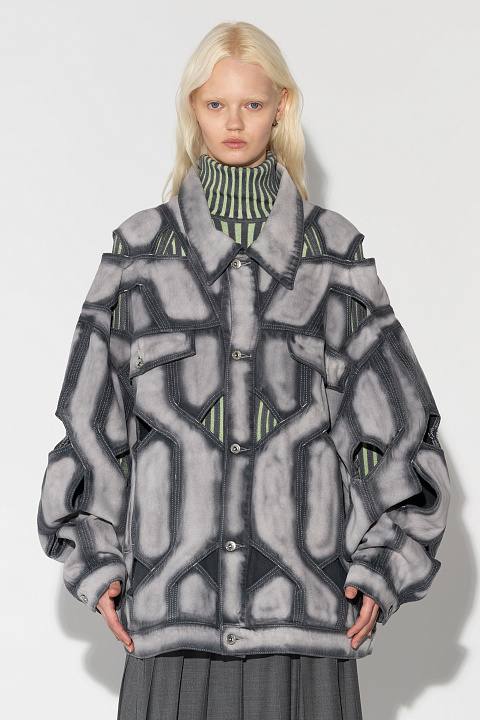 Черные мужские джинсы прямого кроя имеют знаковый элемент дизайна Red September — сложный крой с ассиметричным расположением карманов, будто джинсы перевернуты.