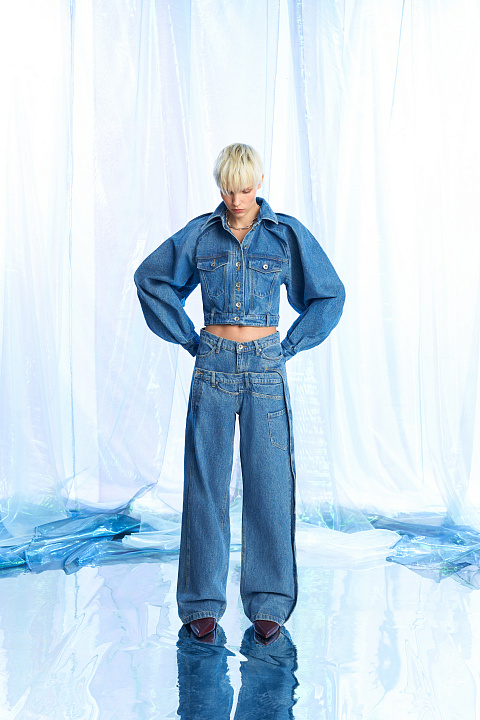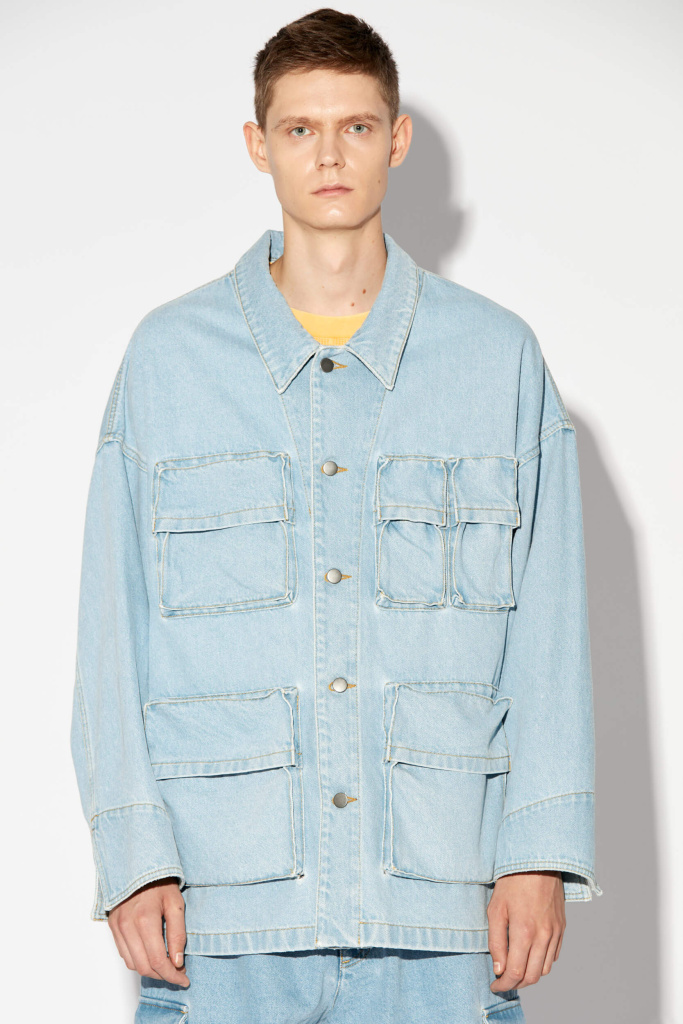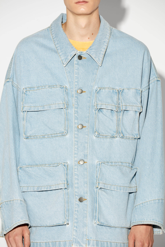 Вариация бренда Red September на классическую модель рабочей куртки, выполненной из джинсы. Объемные накладные карманы придают утилитарность силуэту.